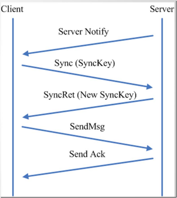 • SyncKey,由服务器端序列号生成器生成,一旦有新消息产生,将会产生最新的SyncKey。类似于版本号