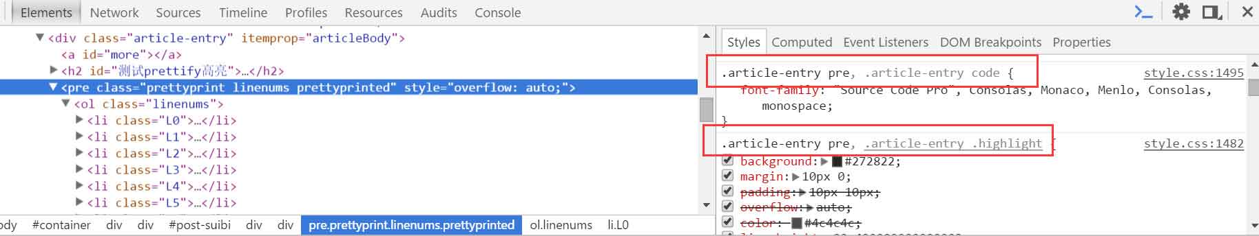 此时F12我们定位此块代码样式发现,刚第一步禁用的highlight高亮插件的样式还是会加载