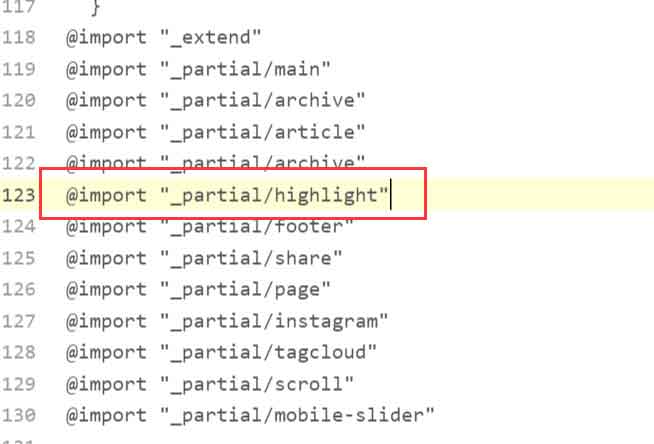 上一步高亮结果显示有问题,于是立马怀疑yilia主题没有对highlight配置项做开关控制,结果发现在themes\yilia\source\css\style.styl文件确实没有做开关设置,而是直接引入