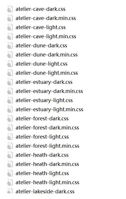 这里面每套主题都对应一个未压缩版和压缩版,而每套主题的效果,可以点击此链接查看,喜欢那套样式,就直接重命名为prettify替换原来的prettify.css应用即可