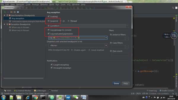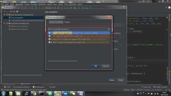 在我们日常开发中或者线上出现 crash 都是特别常见的事情,我们都知道出现了 Exception,可是每次出现 crash 都要去查看日志具体出现什么异常,异常出现在哪一行,这是非常头疼的问题,因为打印出现的关键堆栈信心早已被一大堆的系统日志和 App 日志所淹没了。我们希望的是,只要程序一出现异常,就能够断下来。 AndroidStudio 提供了异常断点,可以在特定异常发生的那一刻,直接让整个程序停下来,断在异常的那一行代码。