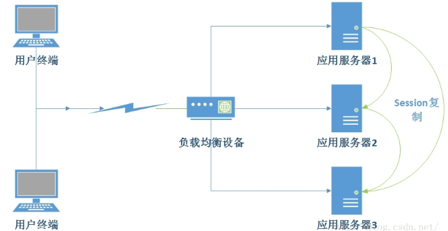 这是一种在早期应用系统中使用较多的服务器session管理方式。应用服务器开启Web容器的session的复制功能,在集群中的几台服务器之间同步session对象,这样一台服务器宕机不会导致session数据丢失。即每一台服务器都持有集群中所有的session,每次访问仅从本机获取就可以了。其工作形式如下所示: