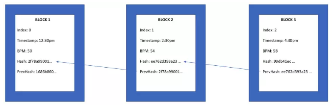 • 维持链的完整性。通过存储前一个块的散列值,我们就能够确保每个块在链中的正确顺序。任何对数据的篡改都将改变散列值,同时也就破坏了链。以我们从事的医疗健康领域为例,比如有一个恶意的第三方为了调整“人寿险”的价格,而修改了一个或若干个块中的代表不健康的 BPM 值,那么整个链都变得不可信了。