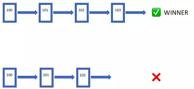 通常来说,更长的链表示它的数据(状态)是更新的,所以我们需要一个函数